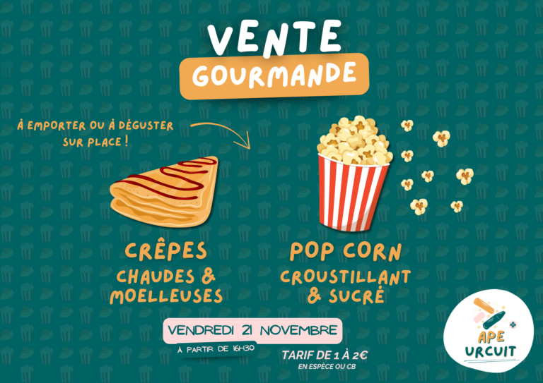 Organisé par : APE Urcuit Lieu : Devant l’école Vente de crêpe et de pop-corn organisée par l’APE d’Urcuit…