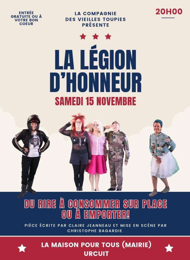 1 / 1 La Légion d’Honneur Pièce écrite par Claire Jeanneau Mise en scène par Christophe Bagardie Synopsis : Bernadette,veuve,a transformé sa grande maison en résidence senior,elle y coule des…