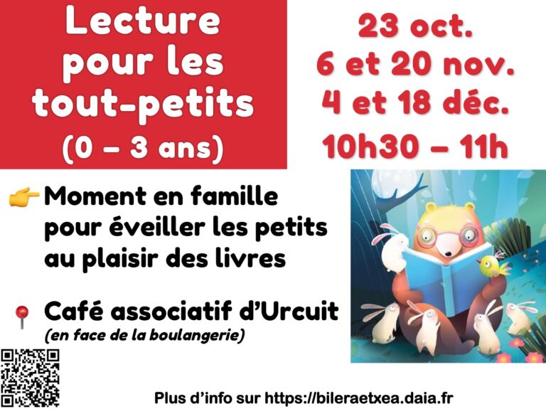 Organisé par : Bilera Etxea et Lire et faire lire Lieu : Café associatif – Bilera Etxea (en face de la boulangerie) Marie-Hélène G. propose un temps de lecture spécialement…