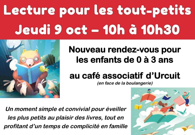 Organisé par : Au Plaisir des Mots Lieu : Maison pour Tous Nuit de la Lecture Urcuit, Maison pour Tous, à partir de 16h. Lectures pour enfants par Fany Comptines…