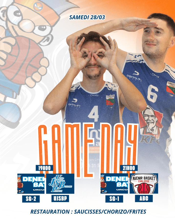 …21h00 : Seniors Garçons 1 contre Avenir Basket Chalosse Deux gros matchs en perspective où chaque point comptera… et où votre soutien fera la différence !!! Rendez-vous à Indarka pour…